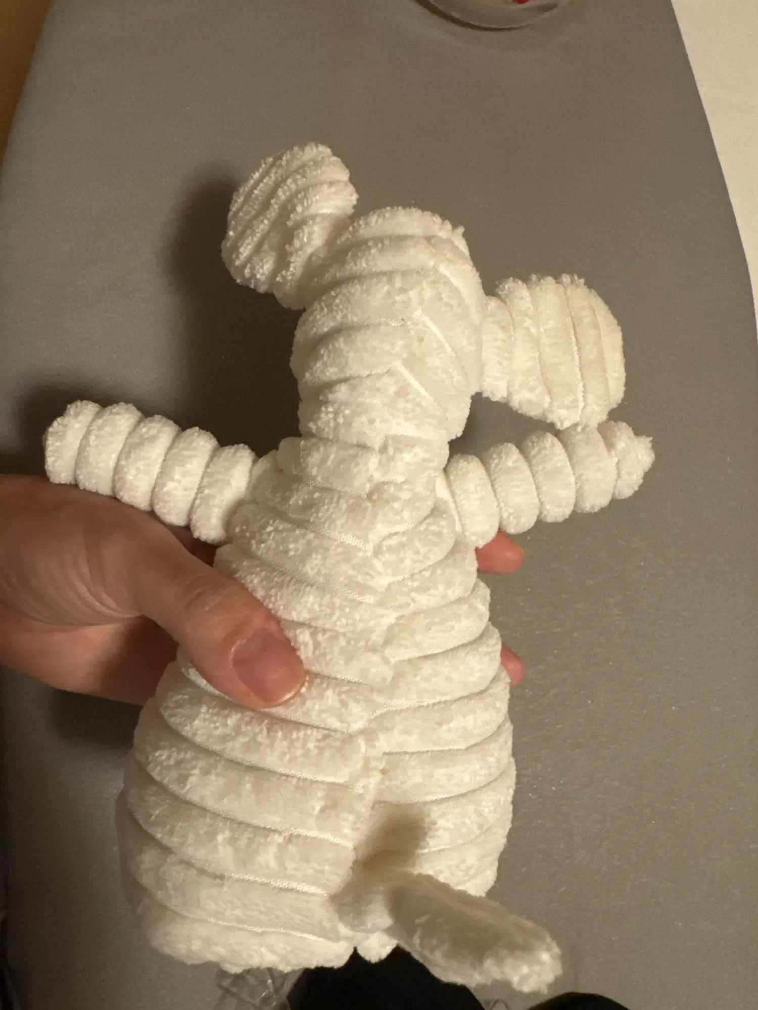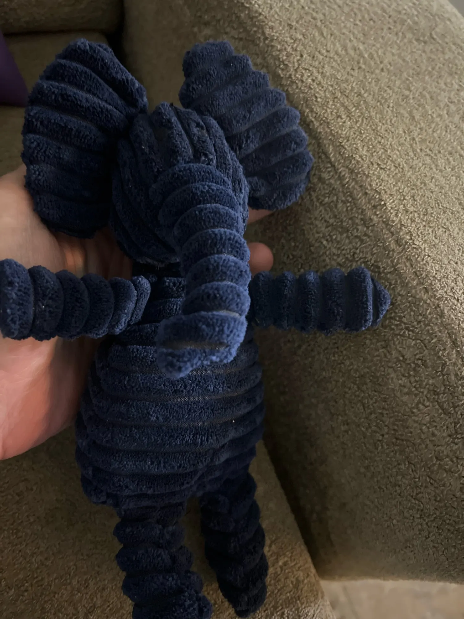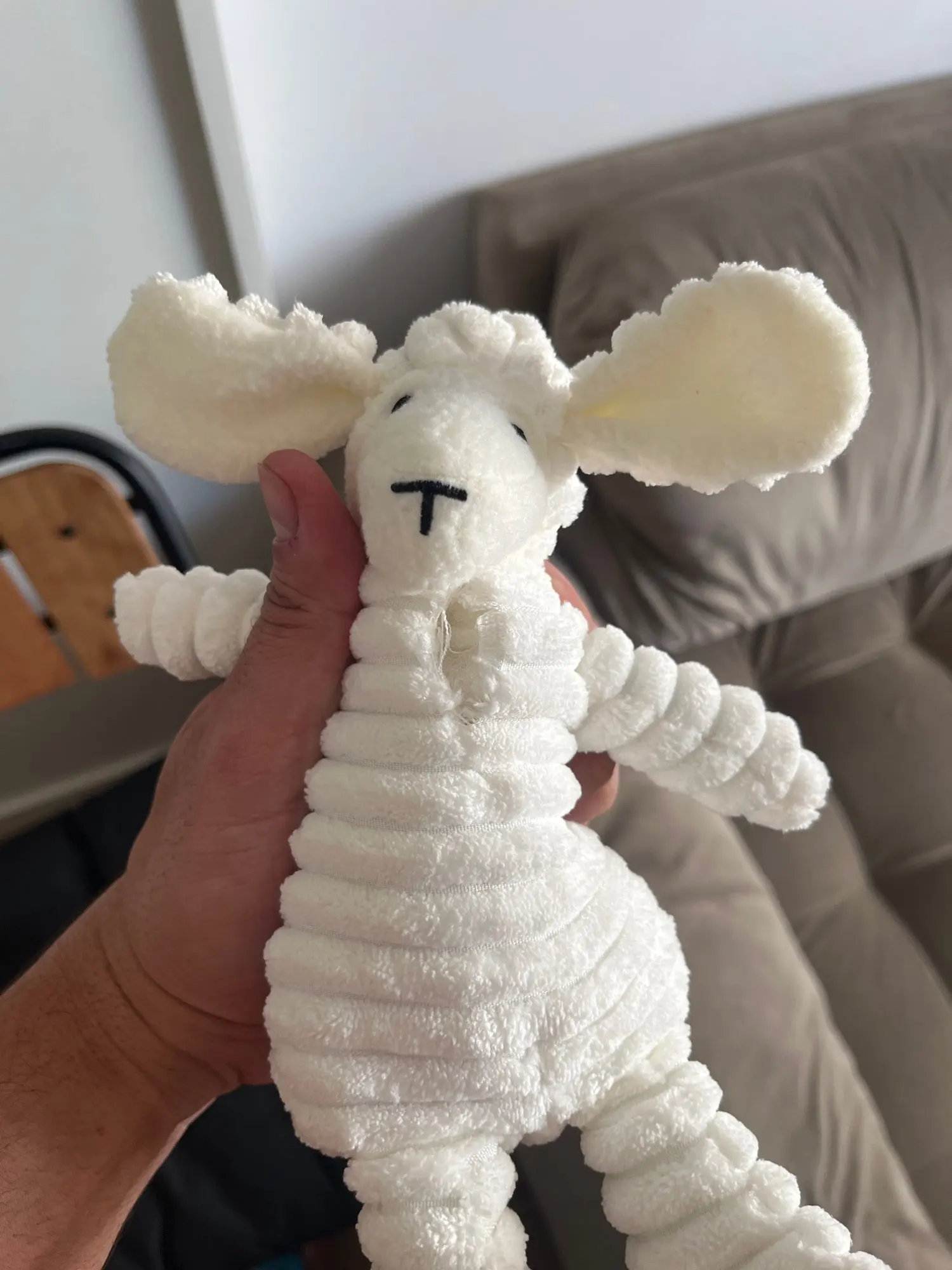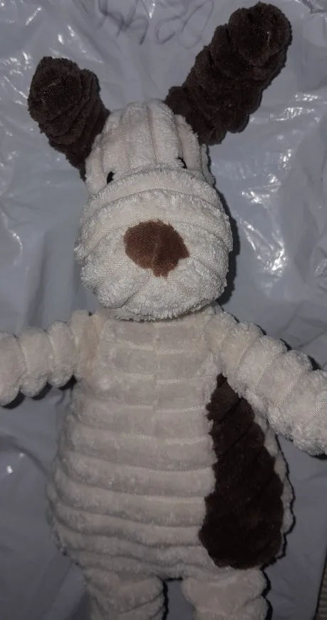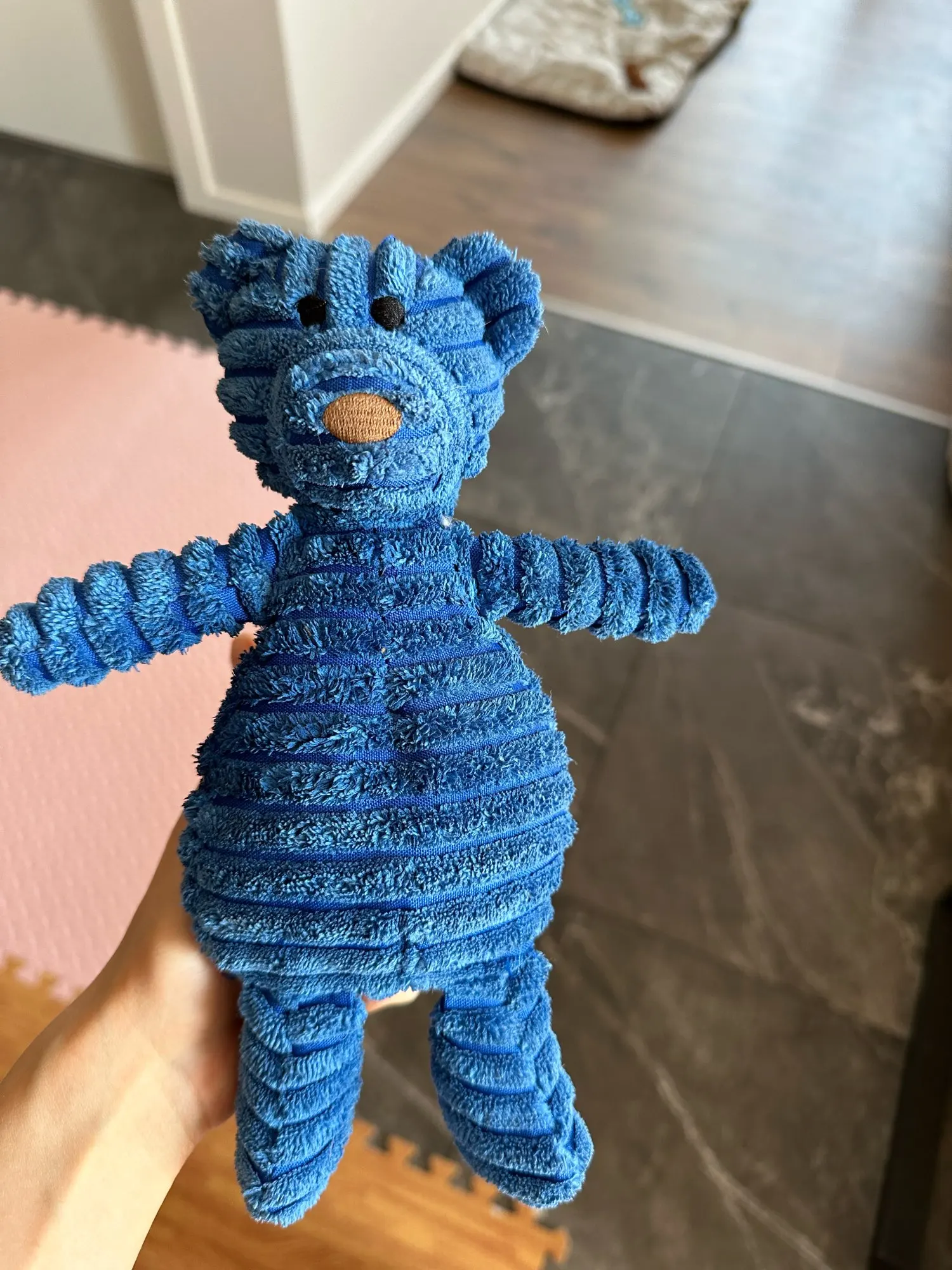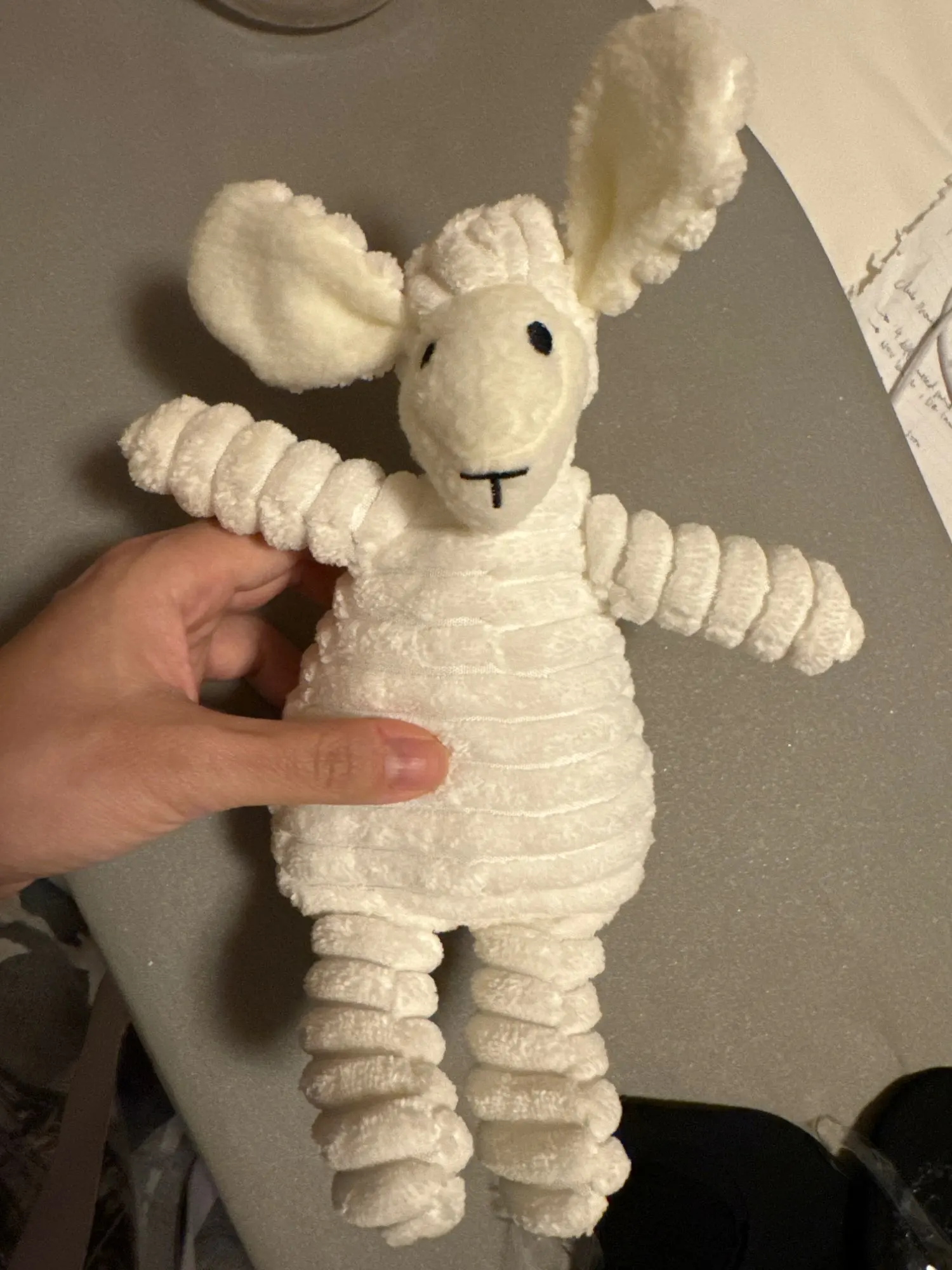 This toy looks defected. The face is very long and doesn’t look like the picture at all the eyes are thread and sewn instead of buttons. The head is badly sewn and out of shape. Very long face instead of a cute one. The squeaker works so if it’s for your dog it’s fine.