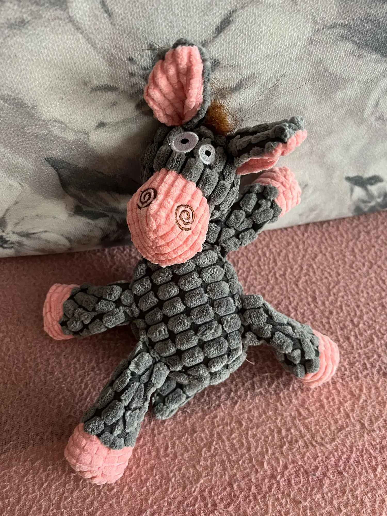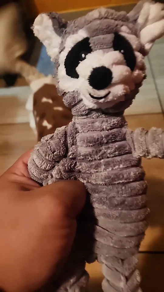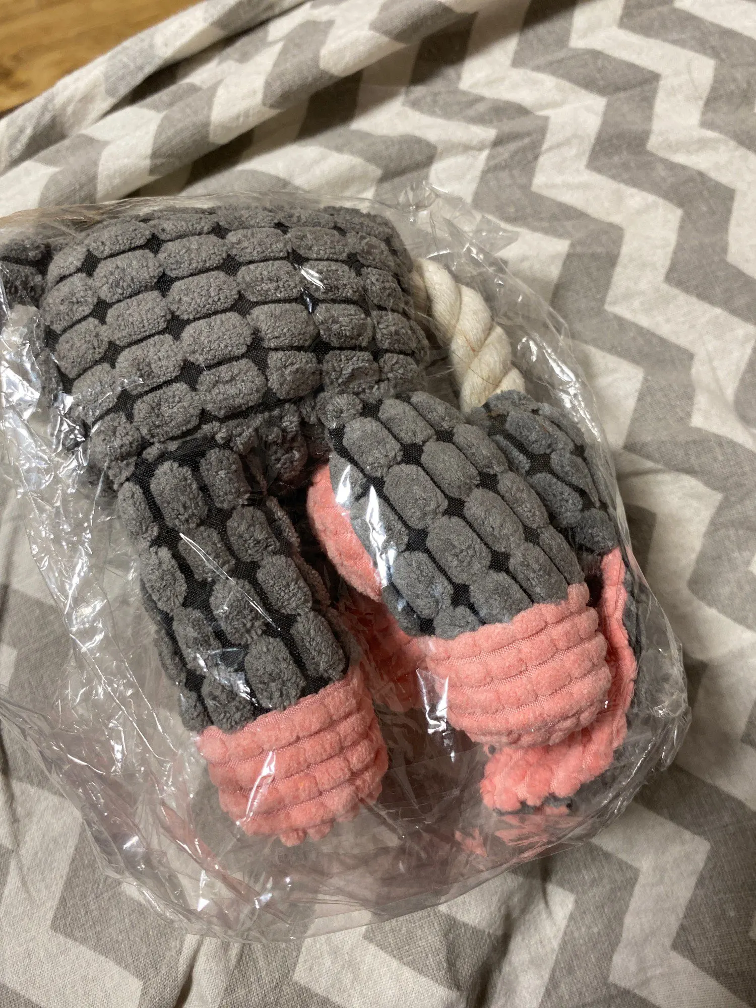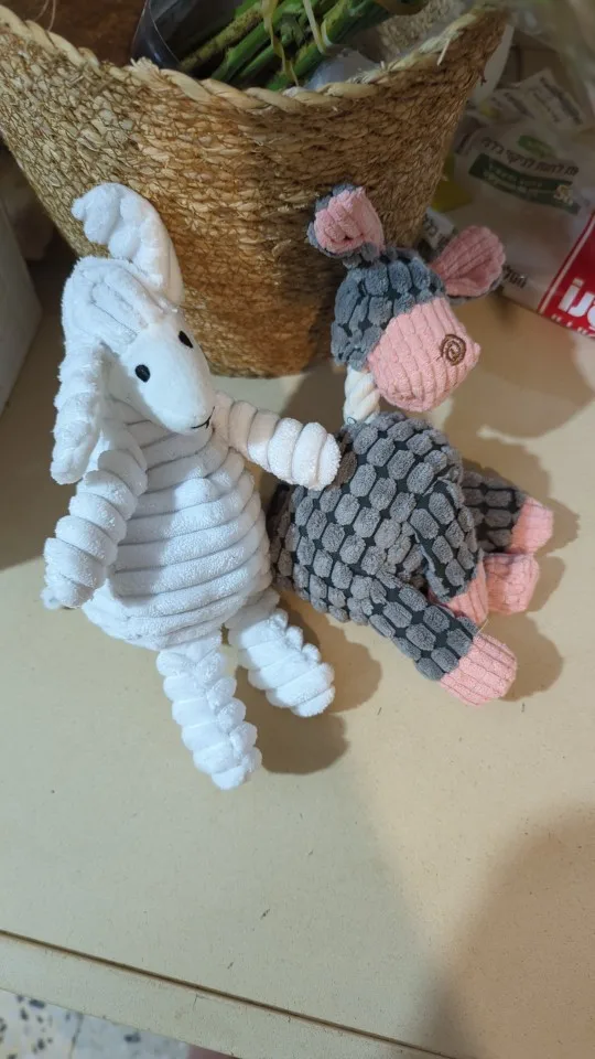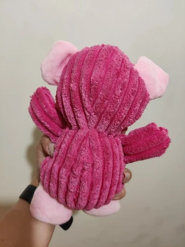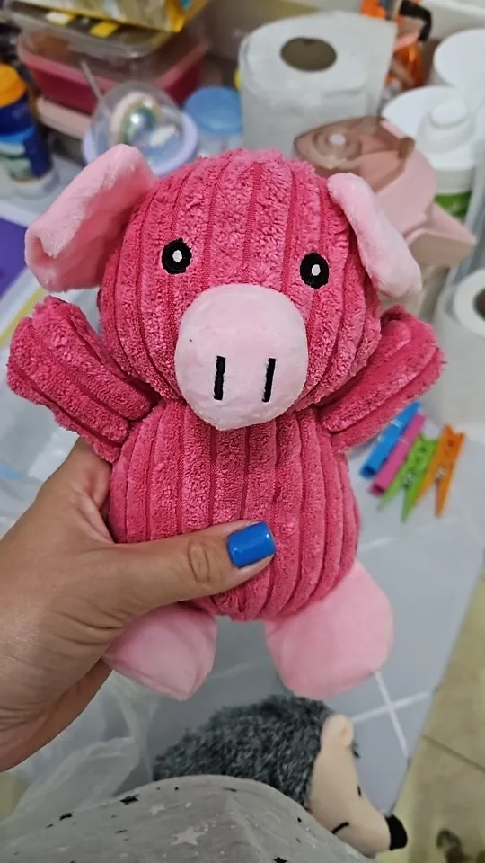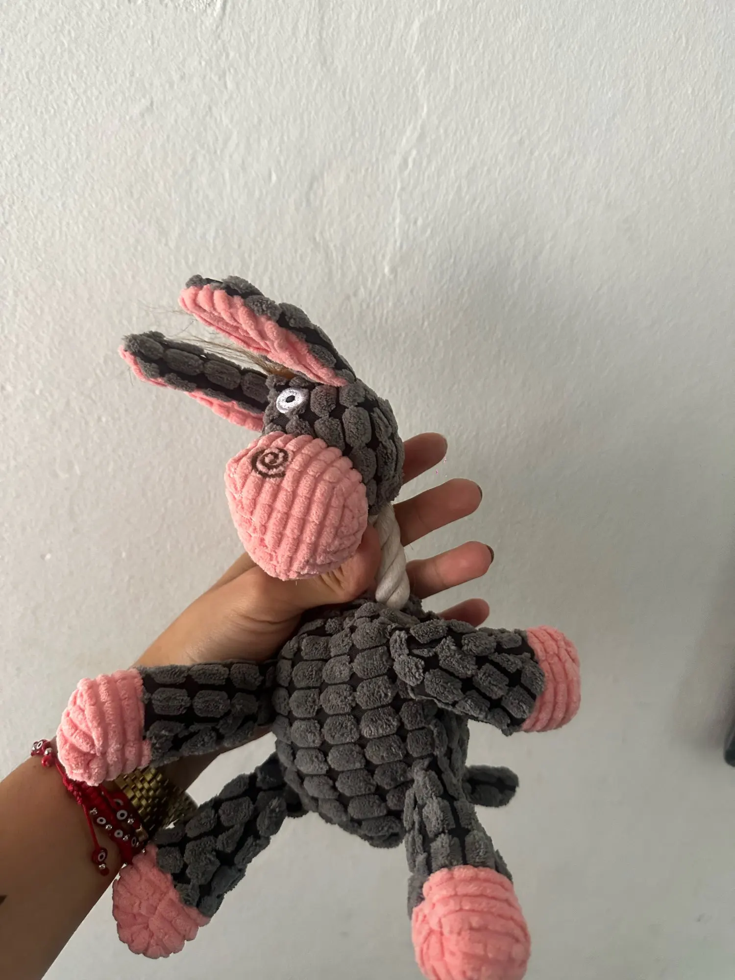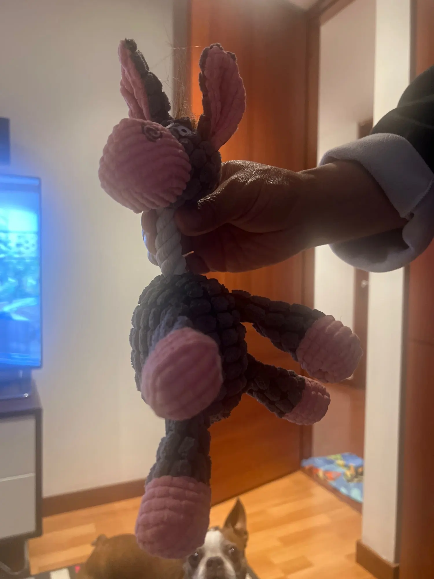 This is an adorable little toy. My squeaker doesn’t work very well but I still like it. My daughter’s furbabies are gonna love it. It is a soft toy but the head is held on with a rope for the dogs to chew on or to play tug of war. Really cute toy.