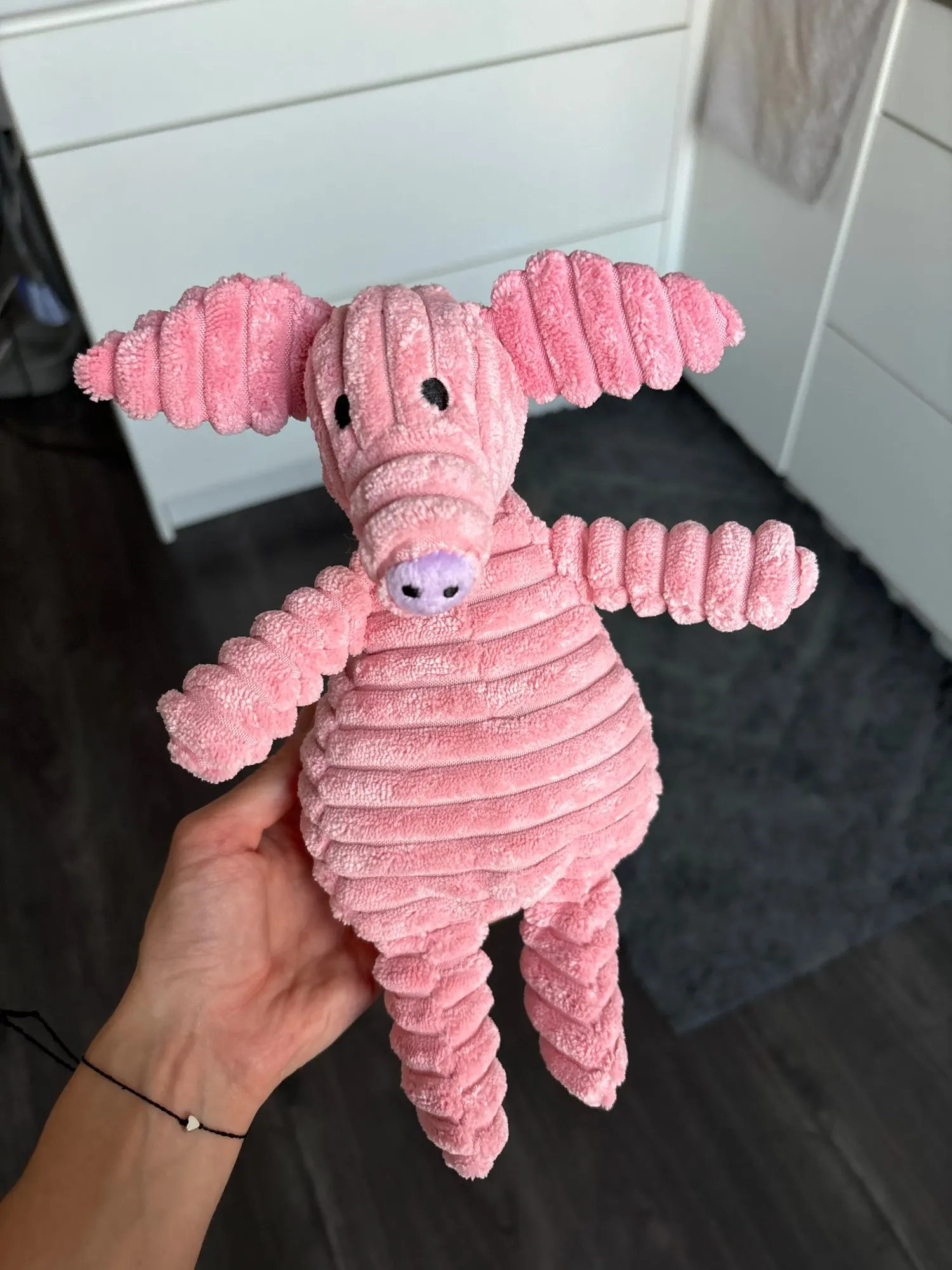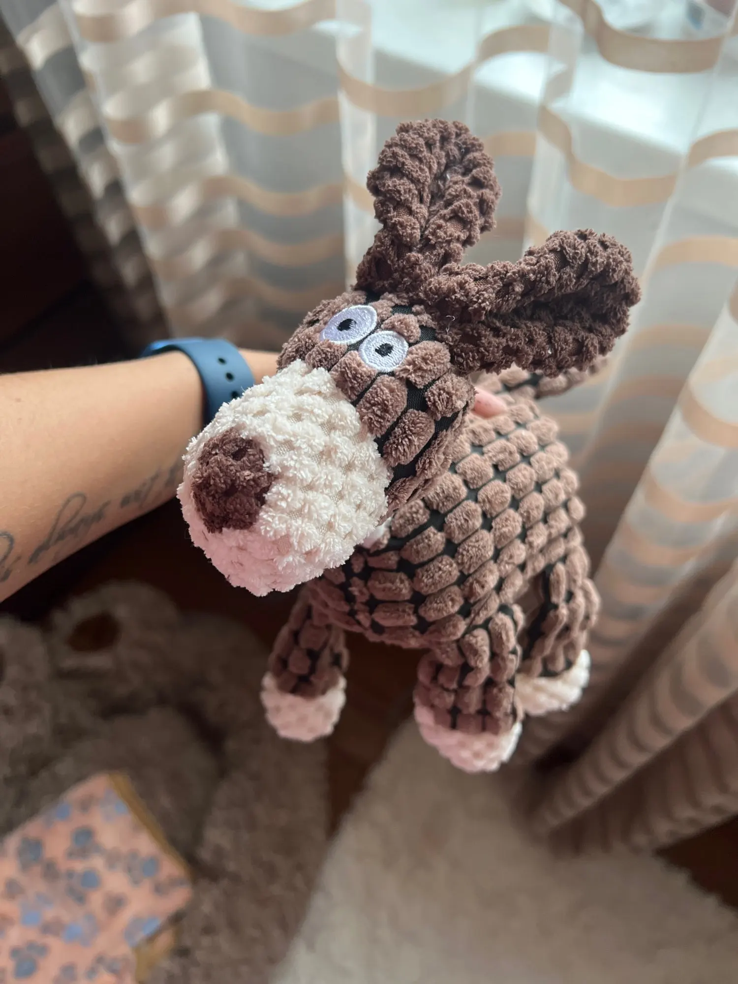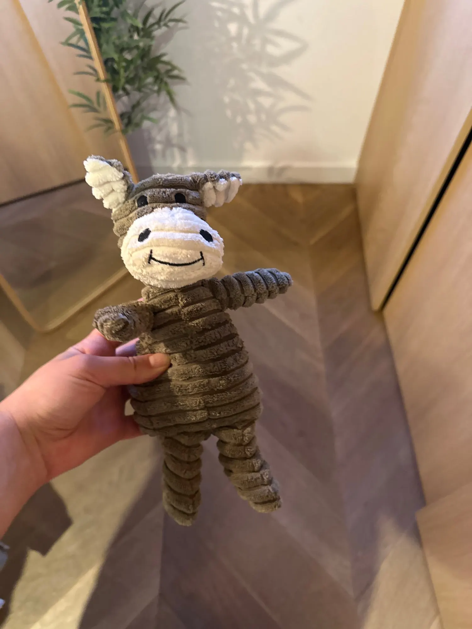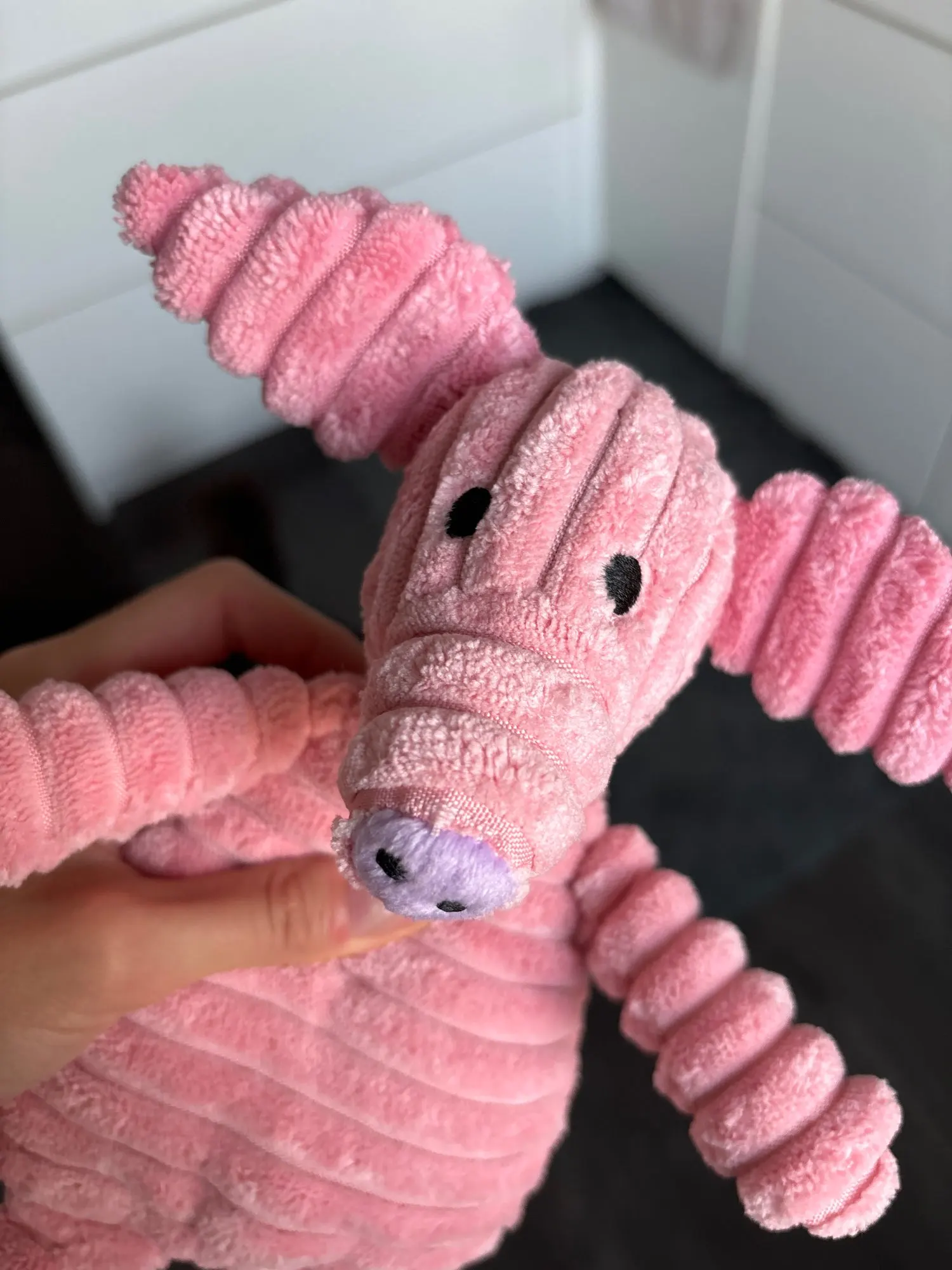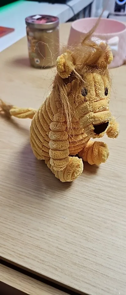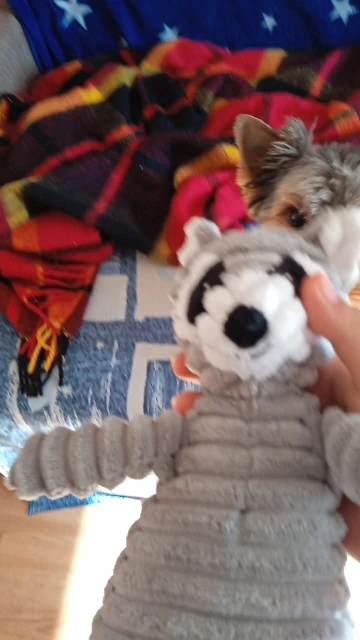 This is an adorable little toy. My squeaker doesn’t work very well but I still like it. My daughter’s furbabies are gonna love it. It is a soft toy but the head is held on with a rope for the dogs to chew on or to play tug of war. Really cute toy.