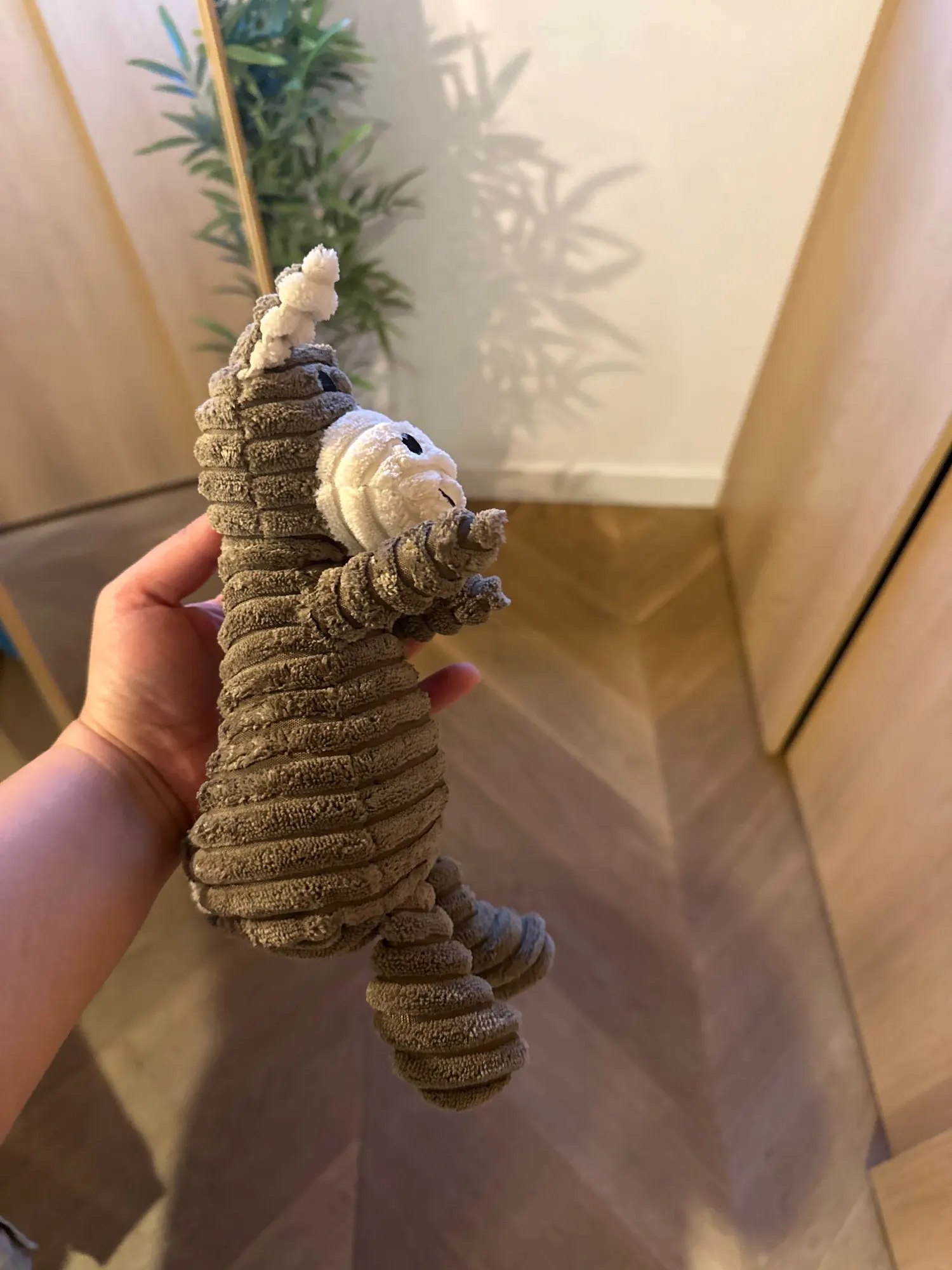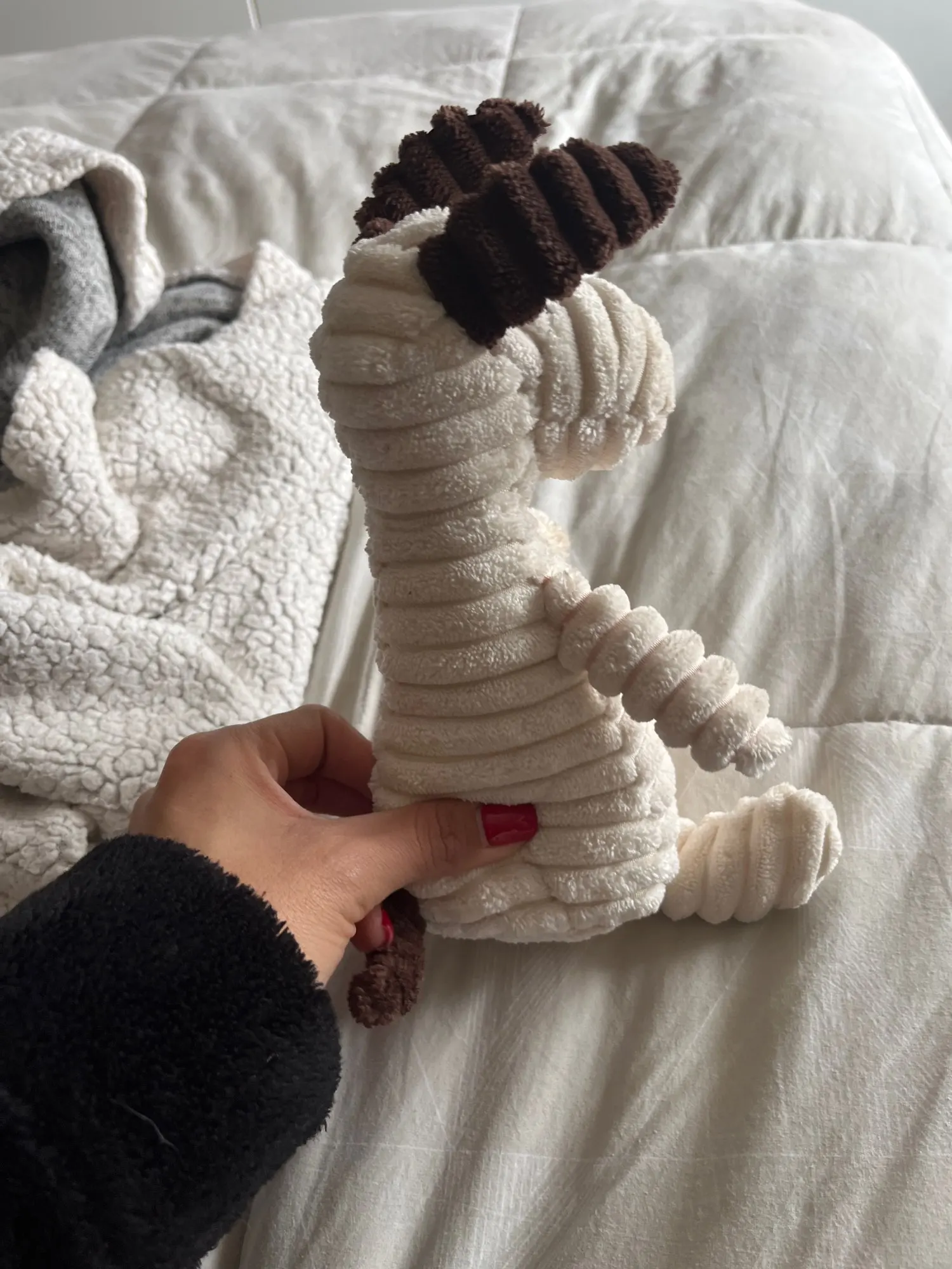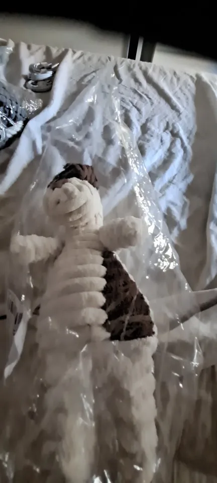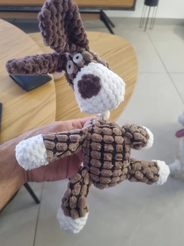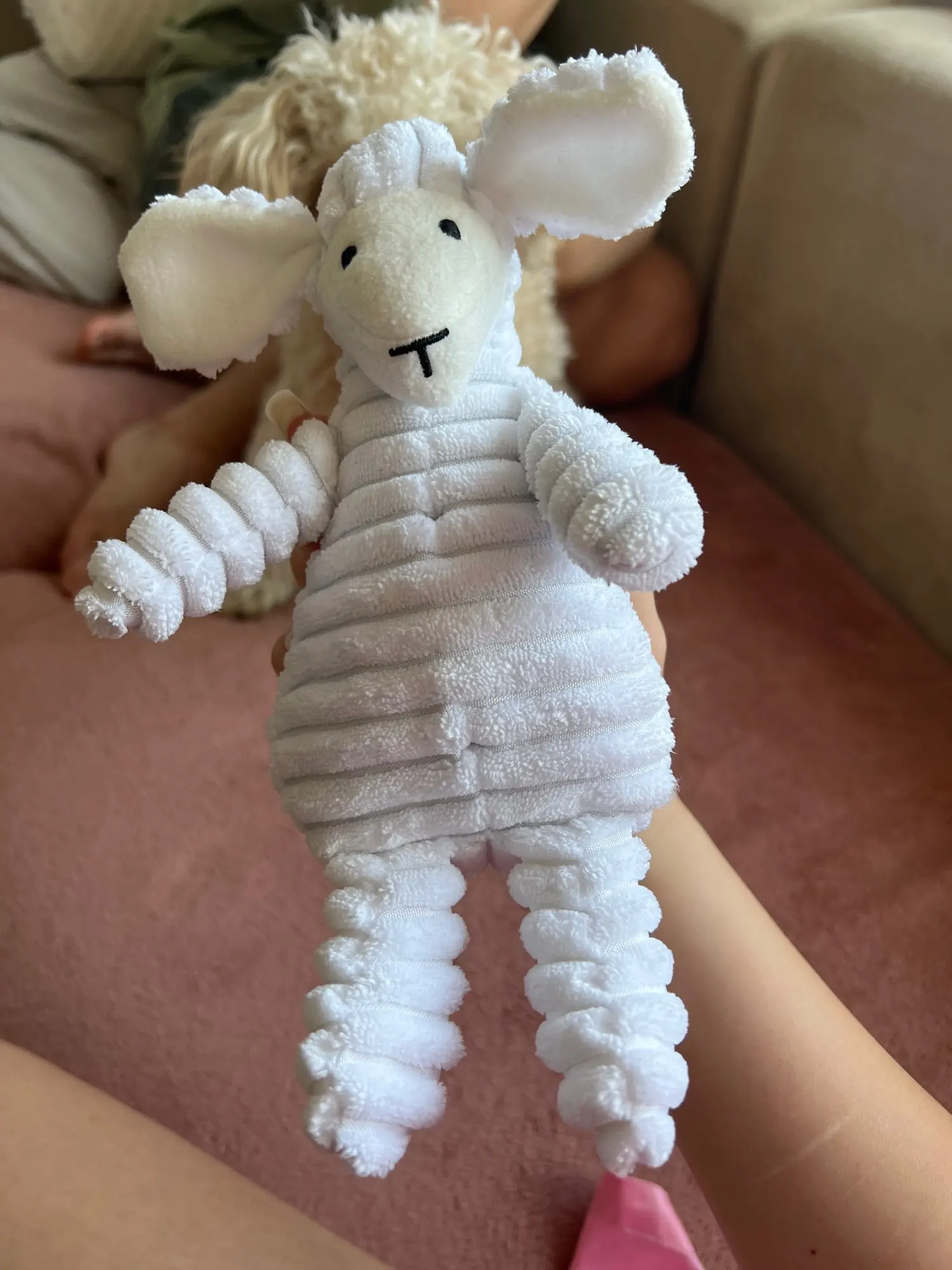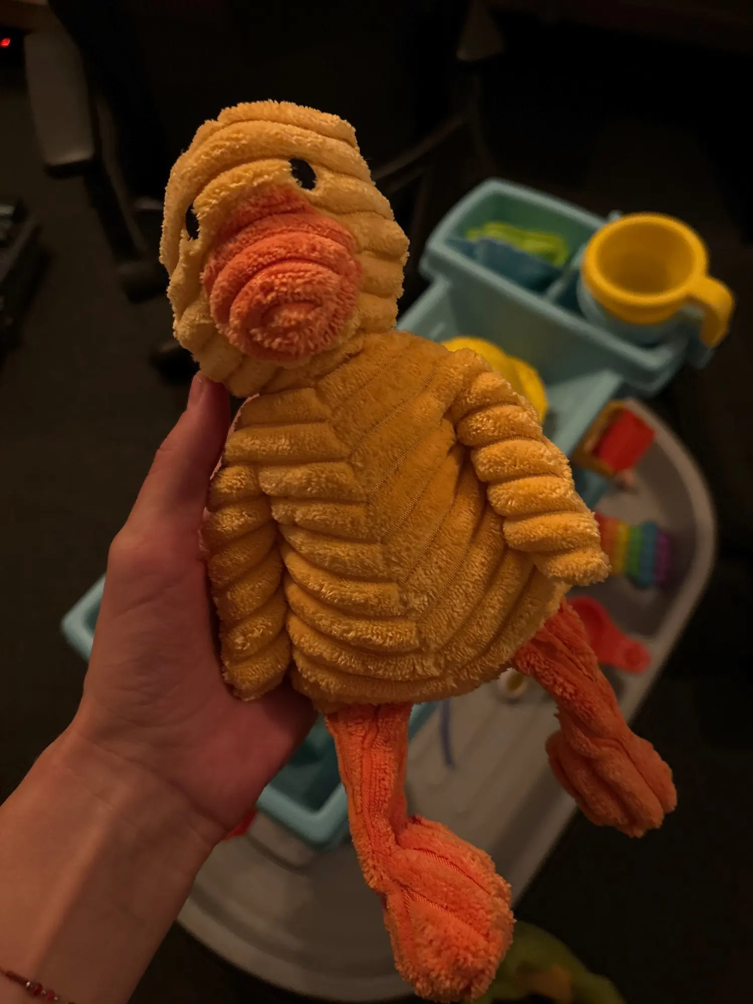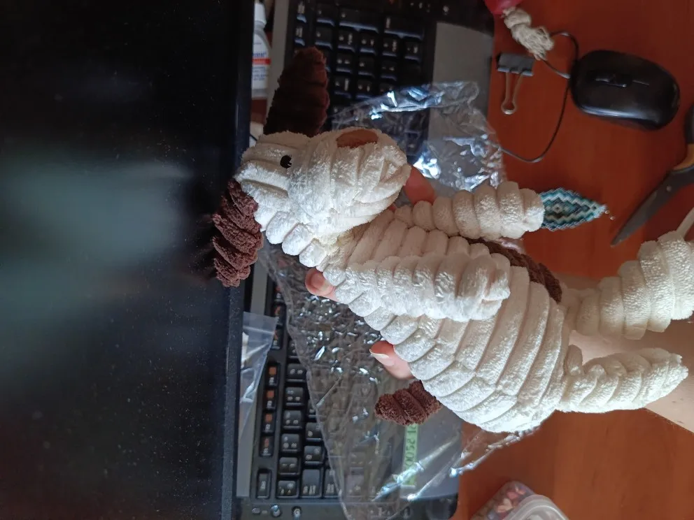 This is an adorable little toy. My squeaker doesn’t work very well but I still like it. My daughter’s furbabies are gonna love it. It is a soft toy but the head is held on with a rope for the dogs to chew on or to play tug of war. Really cute toy.