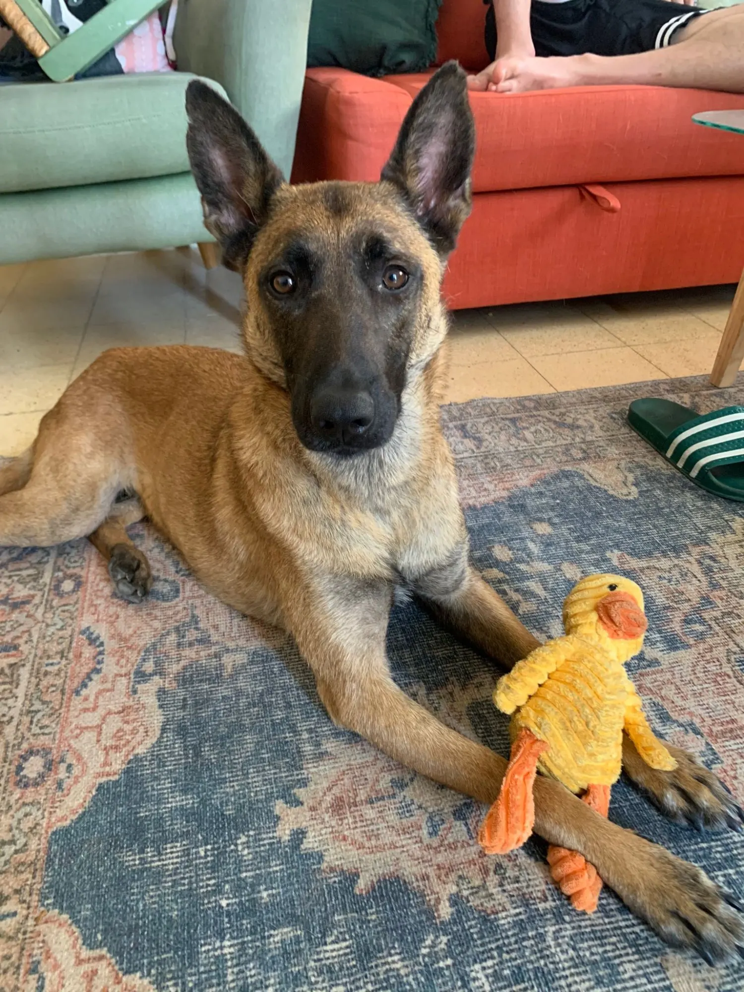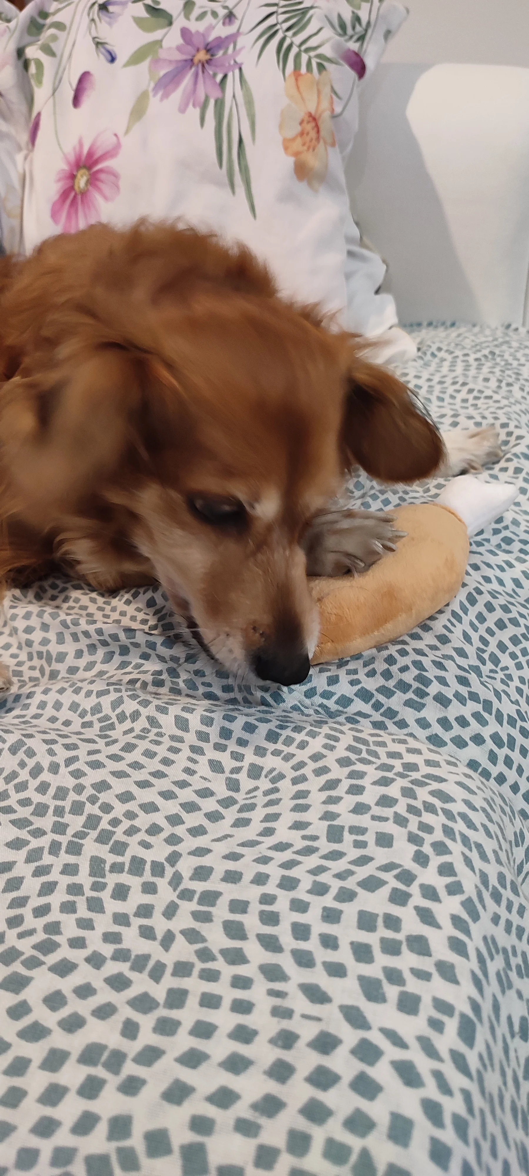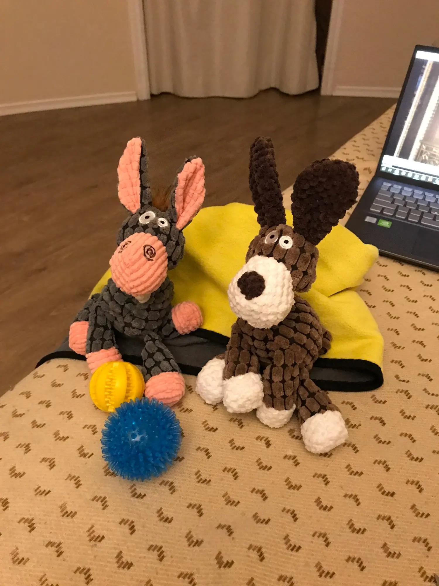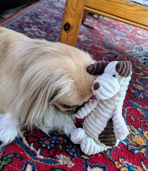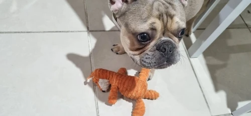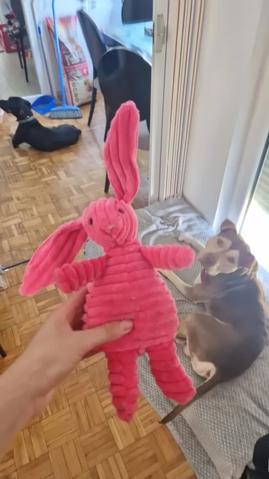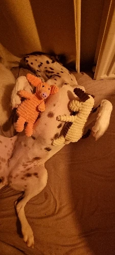 My dog is delighted! Has been with this toy for two days. Cute and beeps. I recommend it. Came quickly enough. Thank you