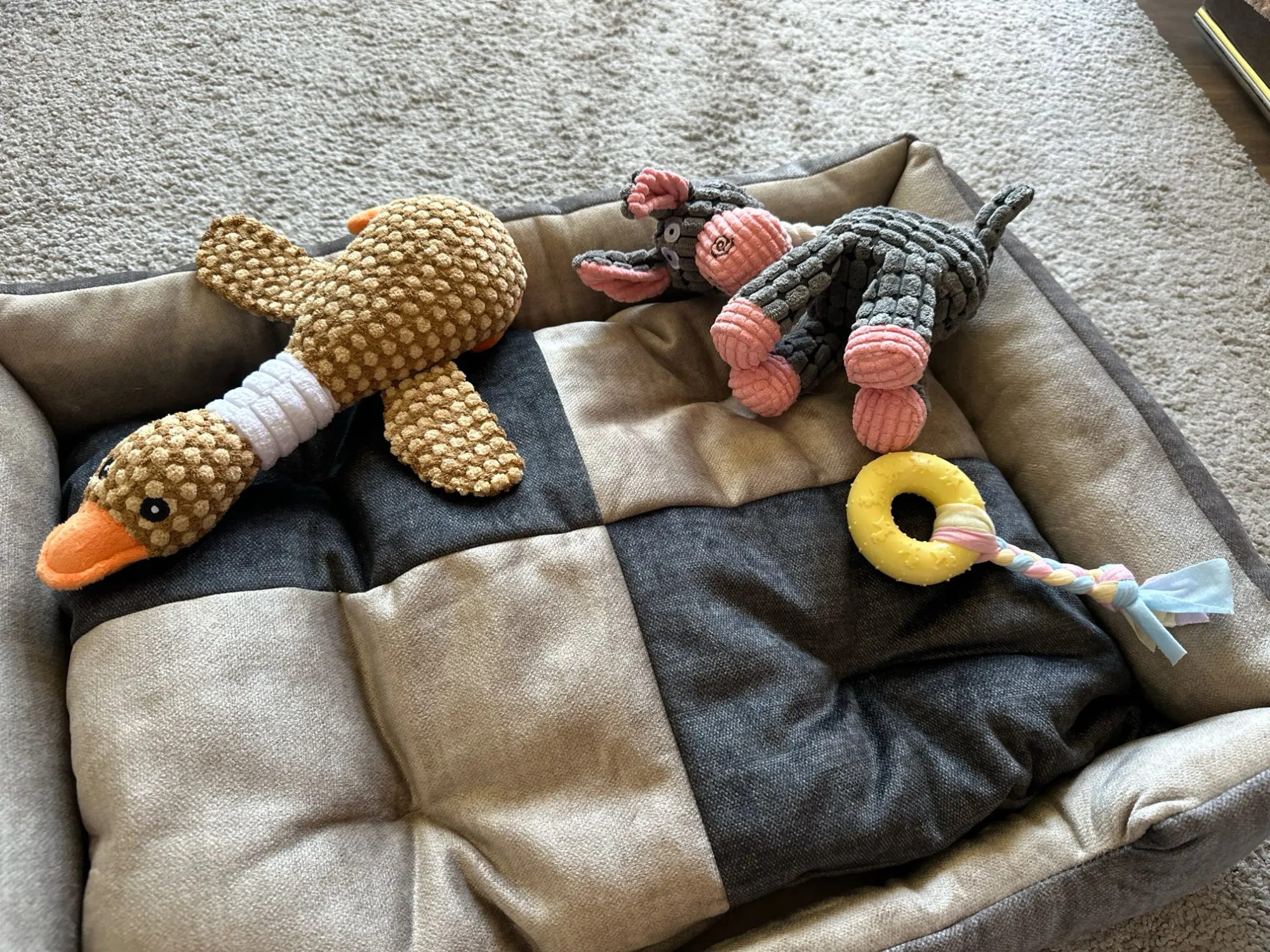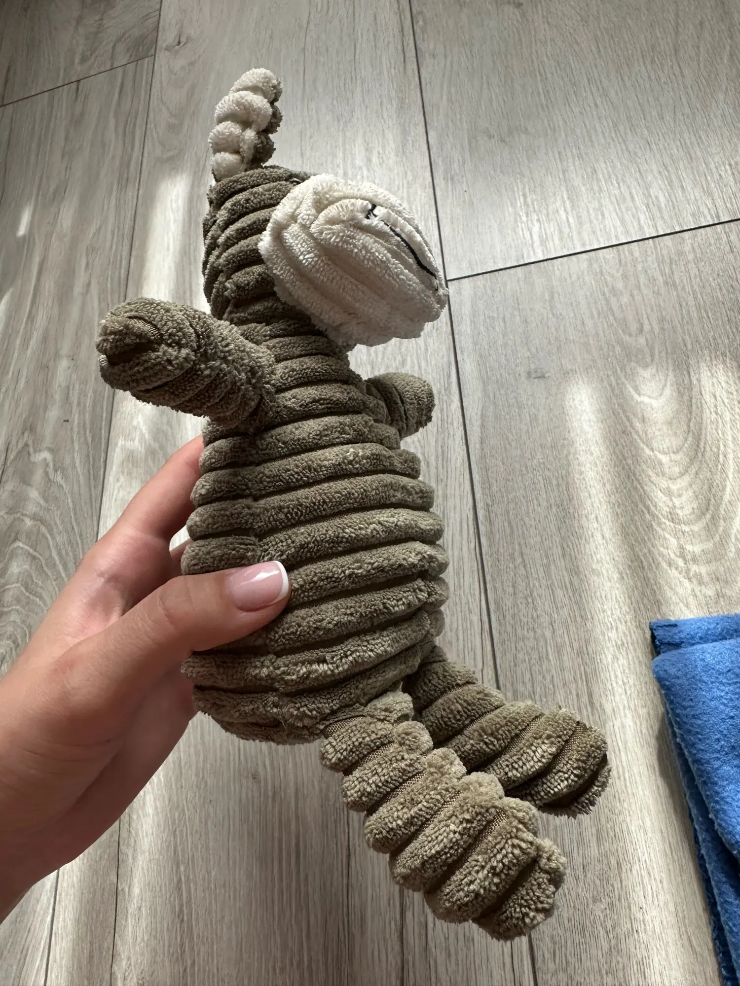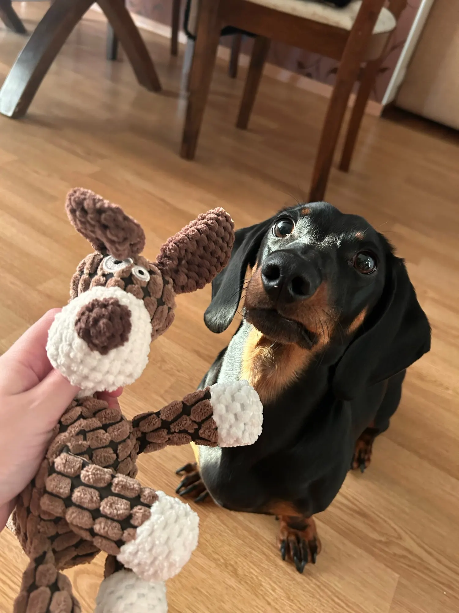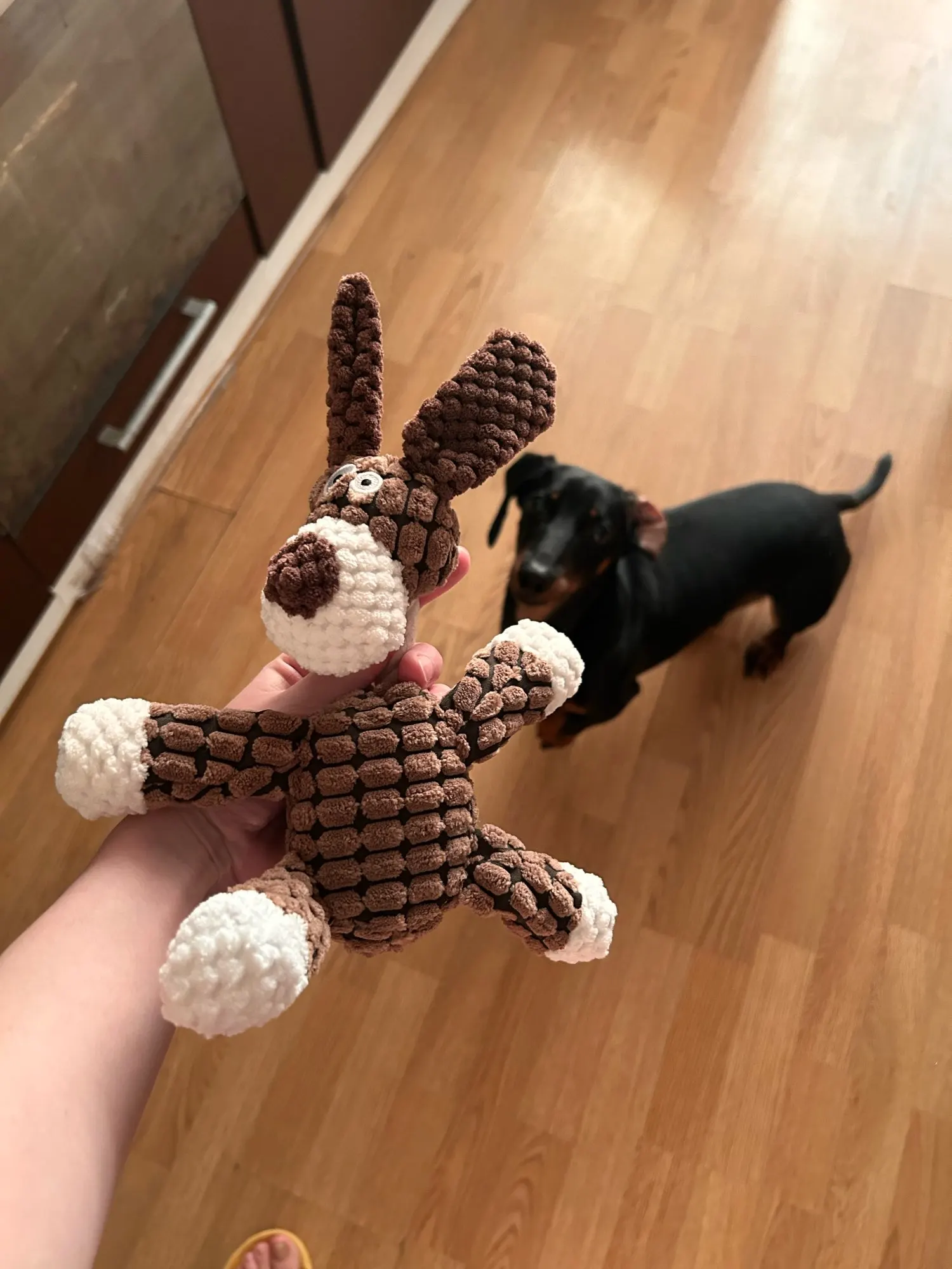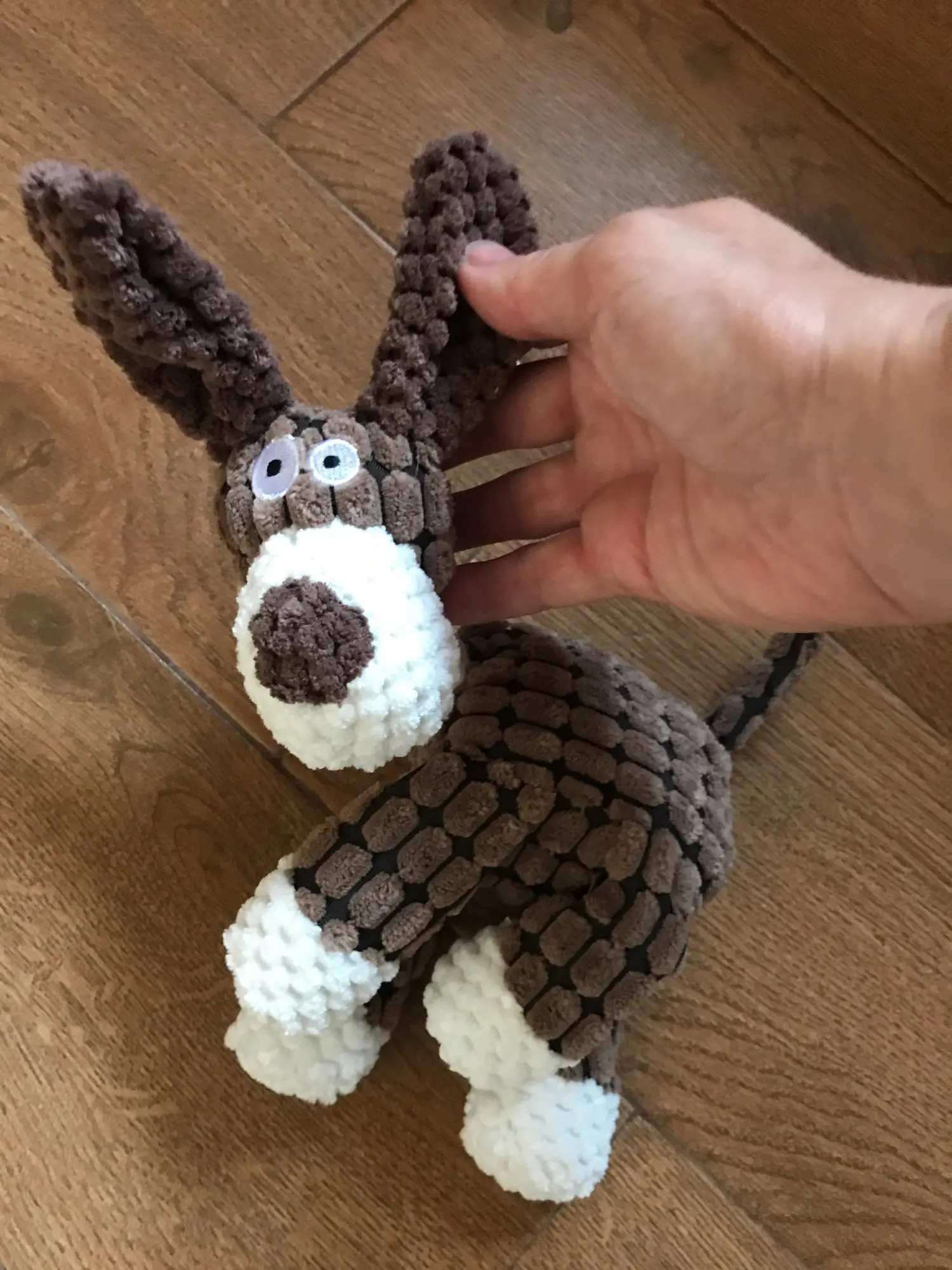 The toy is exactly the same as in the seller’s photo, the puppy likes it. By 5/10 Strength. I don’t think she will live for a long time (we have a beagle), but I have already survived a couple of games with a puppy) I took a picture of her after washing)