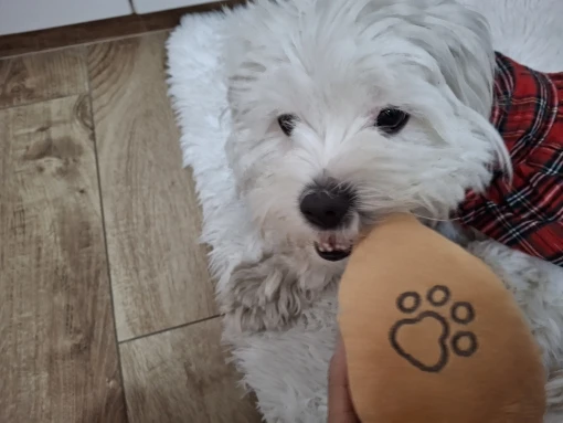 It is small in size but very well finished, even beautiful, it holds well for the moment the treatment that the puppy is giving it, so it fulfills the promised