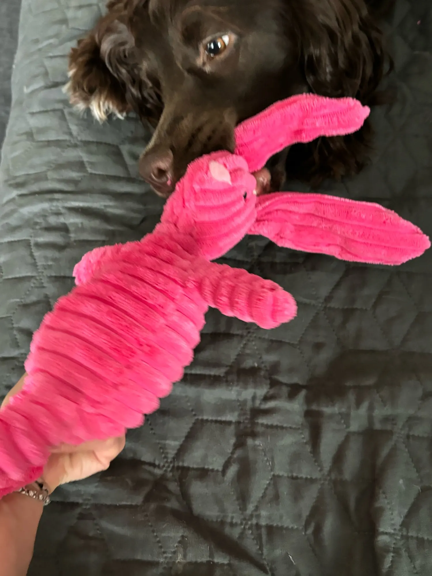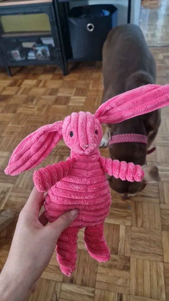 the bunny is very cute. my dog likes it. it is well made and still in one piece.