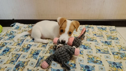 The toy arrived quickly, it was about 2 weeks on the road. The dog likes it very much, constantly running around with it